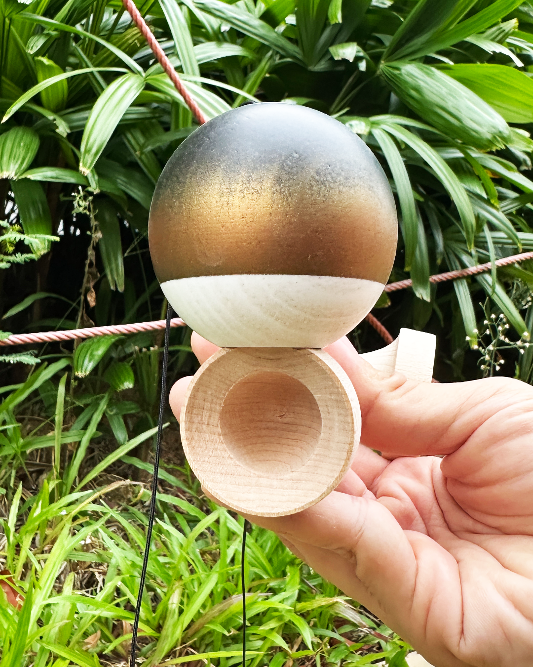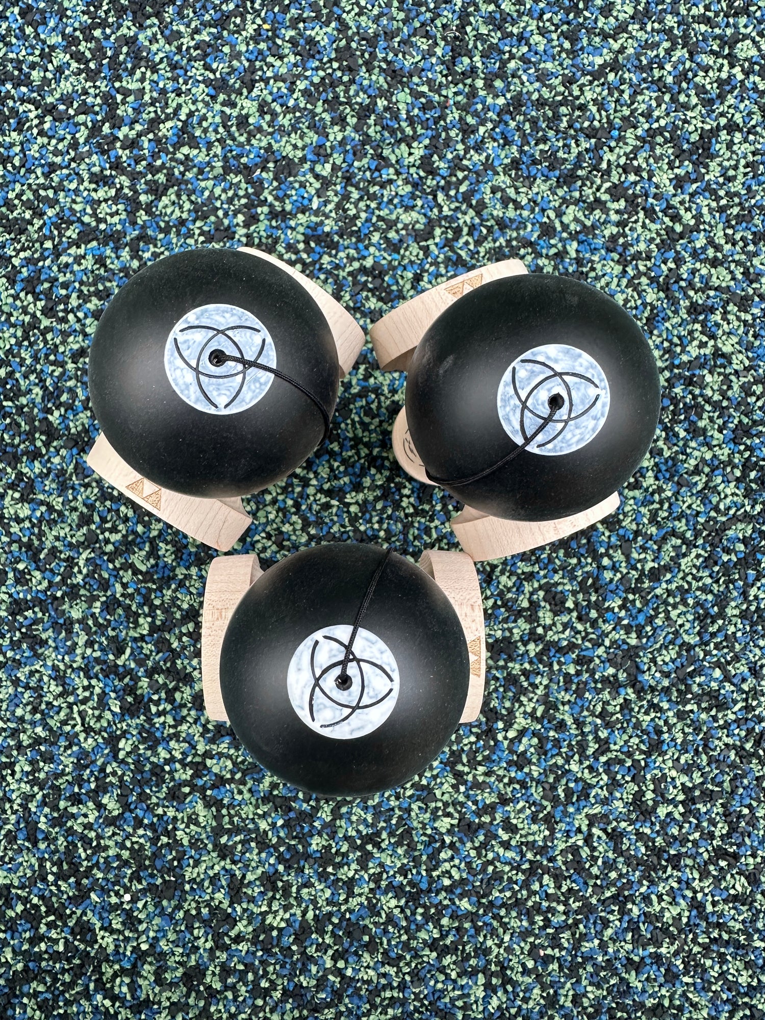 Trinity is all about balance, with an attempt to design a kendama that could perform for all kinds of tricks. This meant keeping the sarado as thick as a Hybrid 204 to help with lunars, while upgrading the cups to allow for gunslingers.