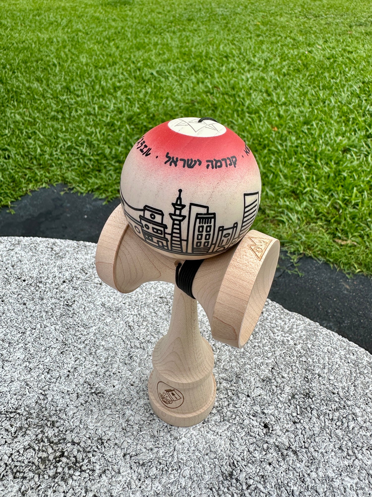 Custom 1 of 1 unique Kendama ISR tama with the legendary handpainted Rhino Clear. Paired with a Cereal Kendama ken. Weight matched to 3g.