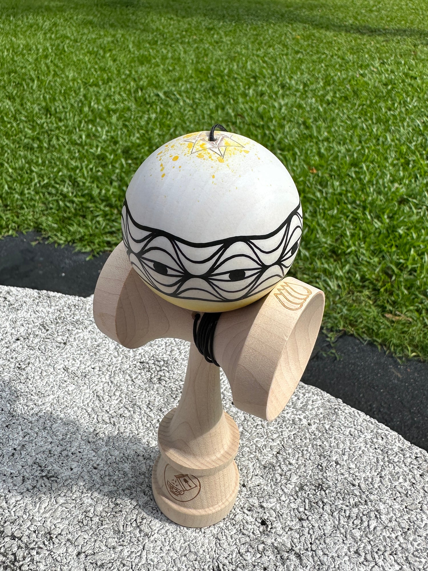 Custom 1 of 1 unique Kendama ISR tama with the legendary handpainted Rhino Clear. Paired with a Cereal Kendama ken. Weight matched to 3g.