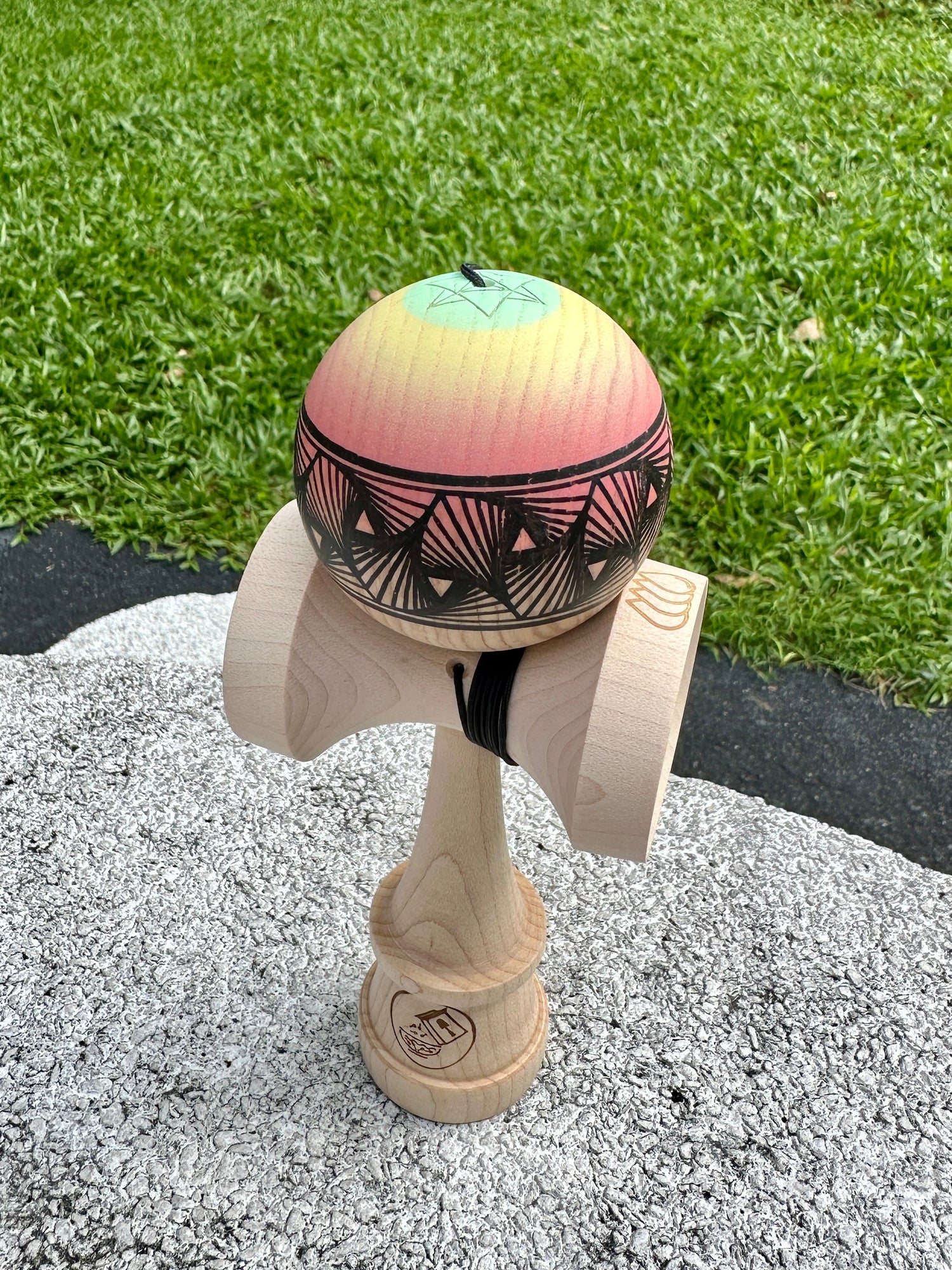 Custom 1 of 1 unique Kendama ISR tama with the legendary handpainted Rhino Clear. Paired with a Cereal Kendama ken. Weight matched to 3g.